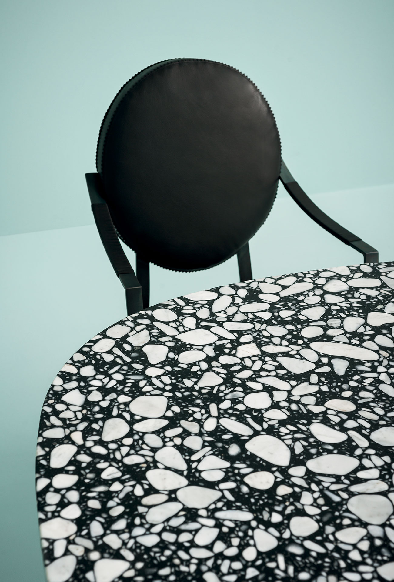 Backrest and seat cushions in channeled goose down (Assopiuma Gold Label certified) undergo routine sanitization as specified in EC Regulation No. 1069/2009, with variable-density polyurethane foam insert for added softness. The seat cushion and its internal casing are crafted with a subtle quilted pattern with double embroidery and quilt stitching that highlights the linear yet soft shape of the seat.