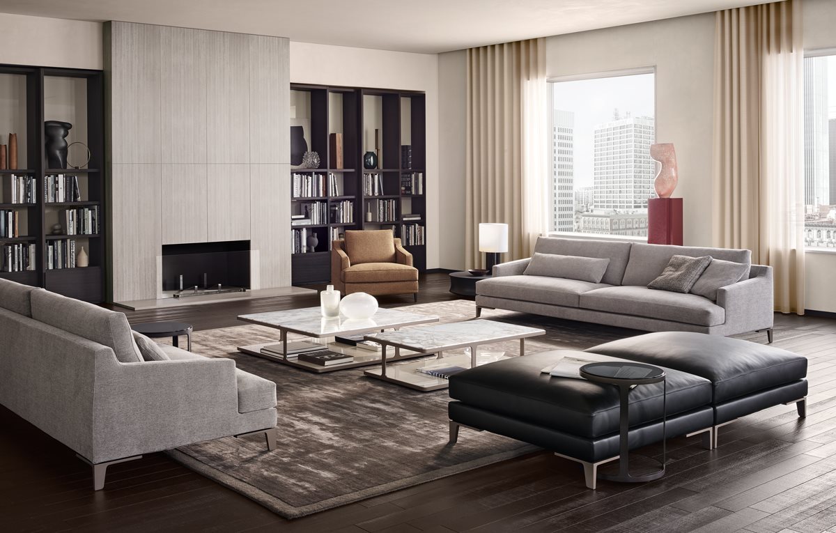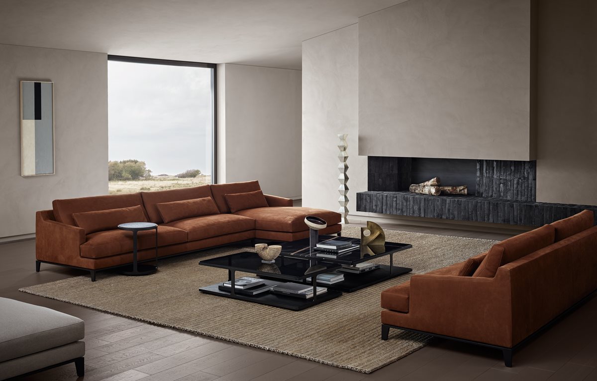 The Connery seating system includes pieces that incorporate low visual impact